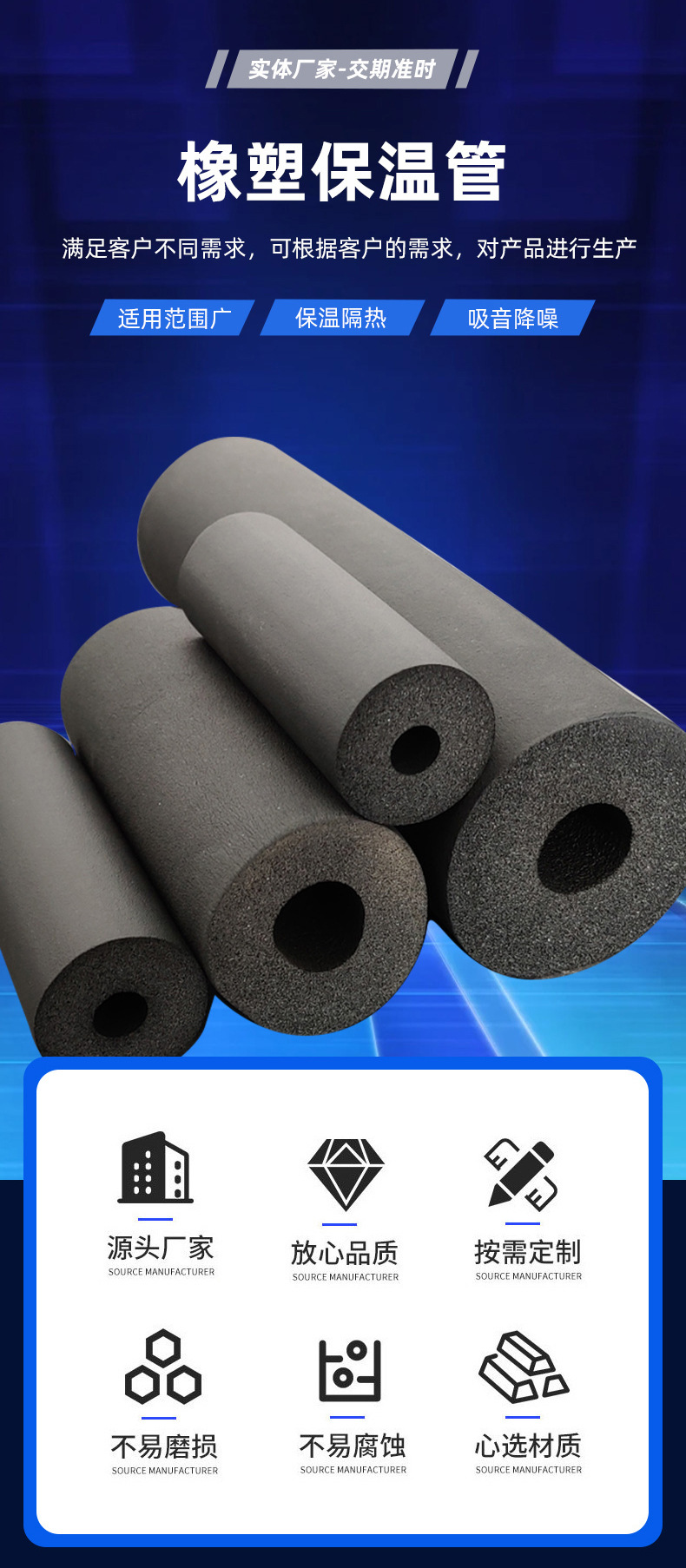 供应NBR橡塑保温管光面双孔橡塑管防滑抗老化丁晴橡塑助燃防冻管
