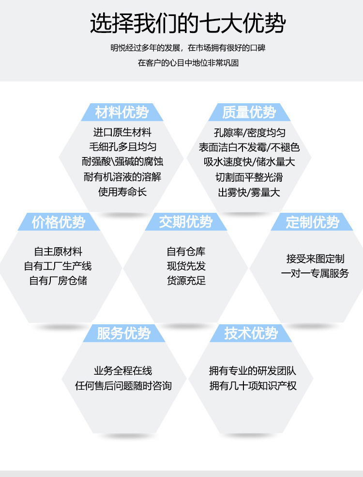 3.孔隙率分布均匀;吸水性特强,储水量大,挥发性稳定;